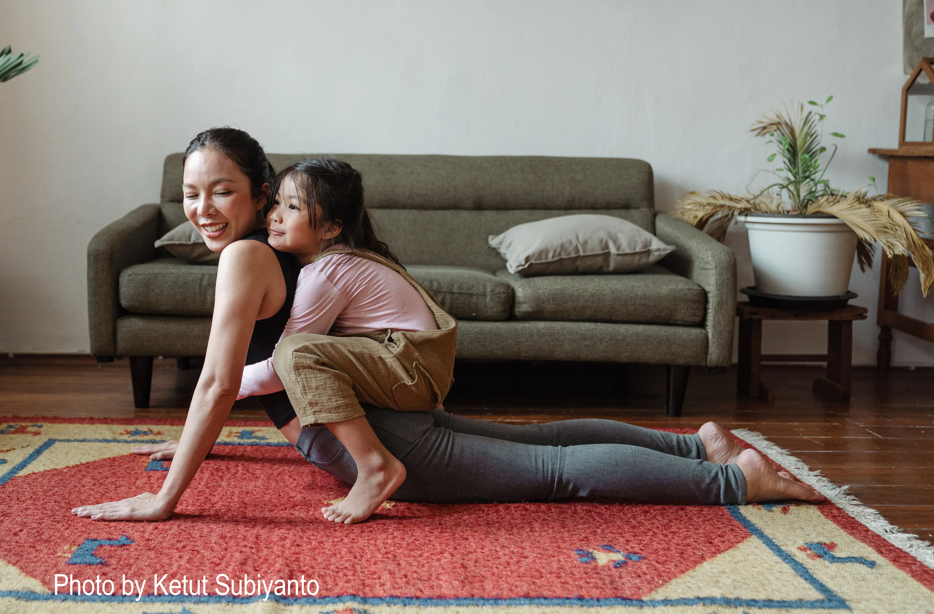 bhujangasana - cobra yoga pose with child on back